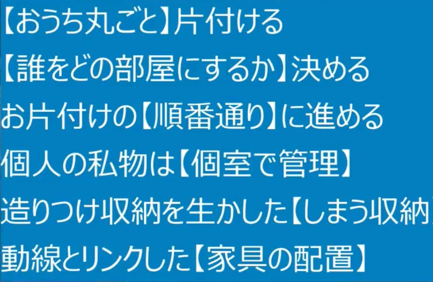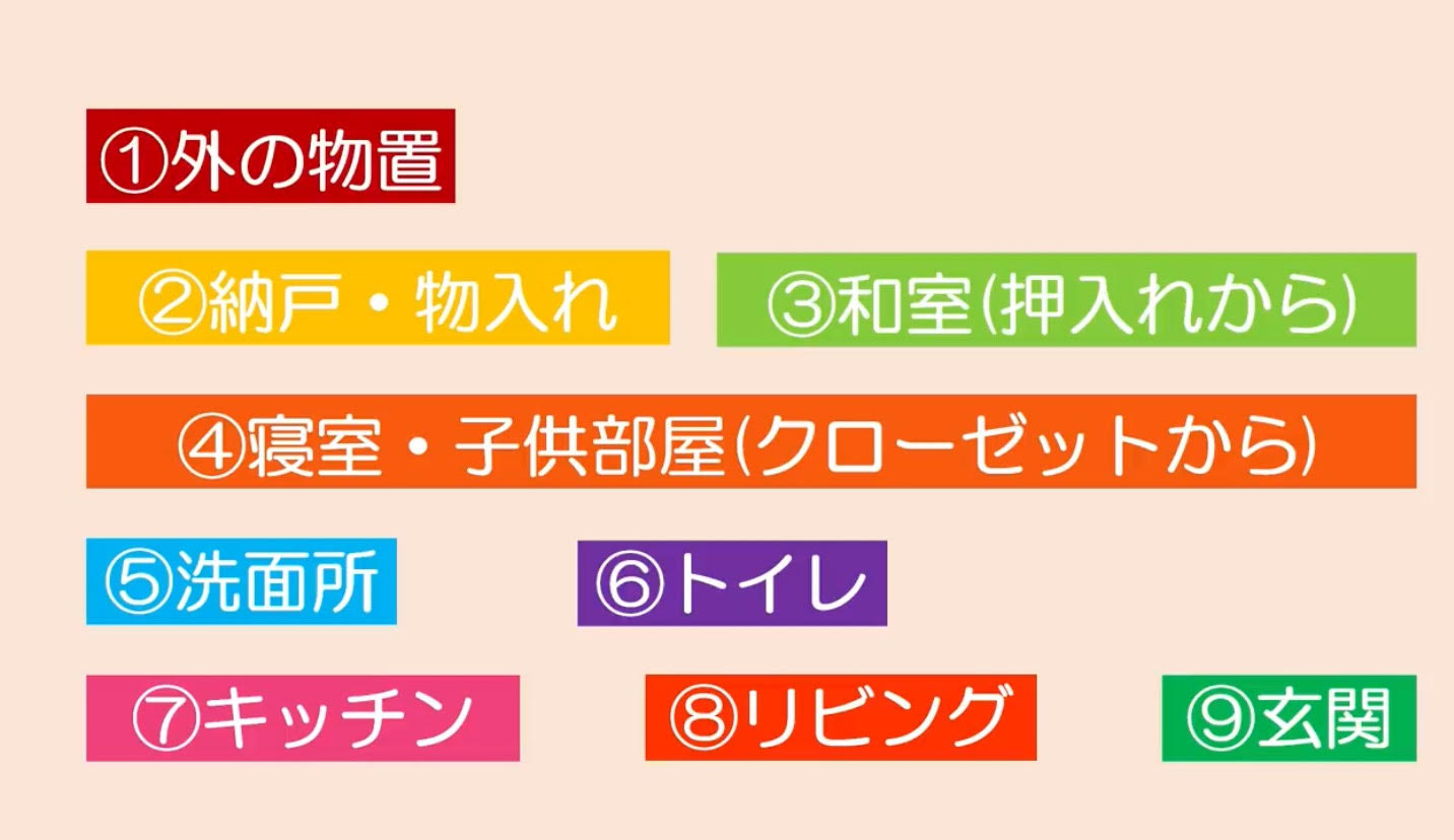 部屋割りが決まれば、次は、安東先生が長年提唱しているお片付けの【順番通り】に進めていきましょう♪