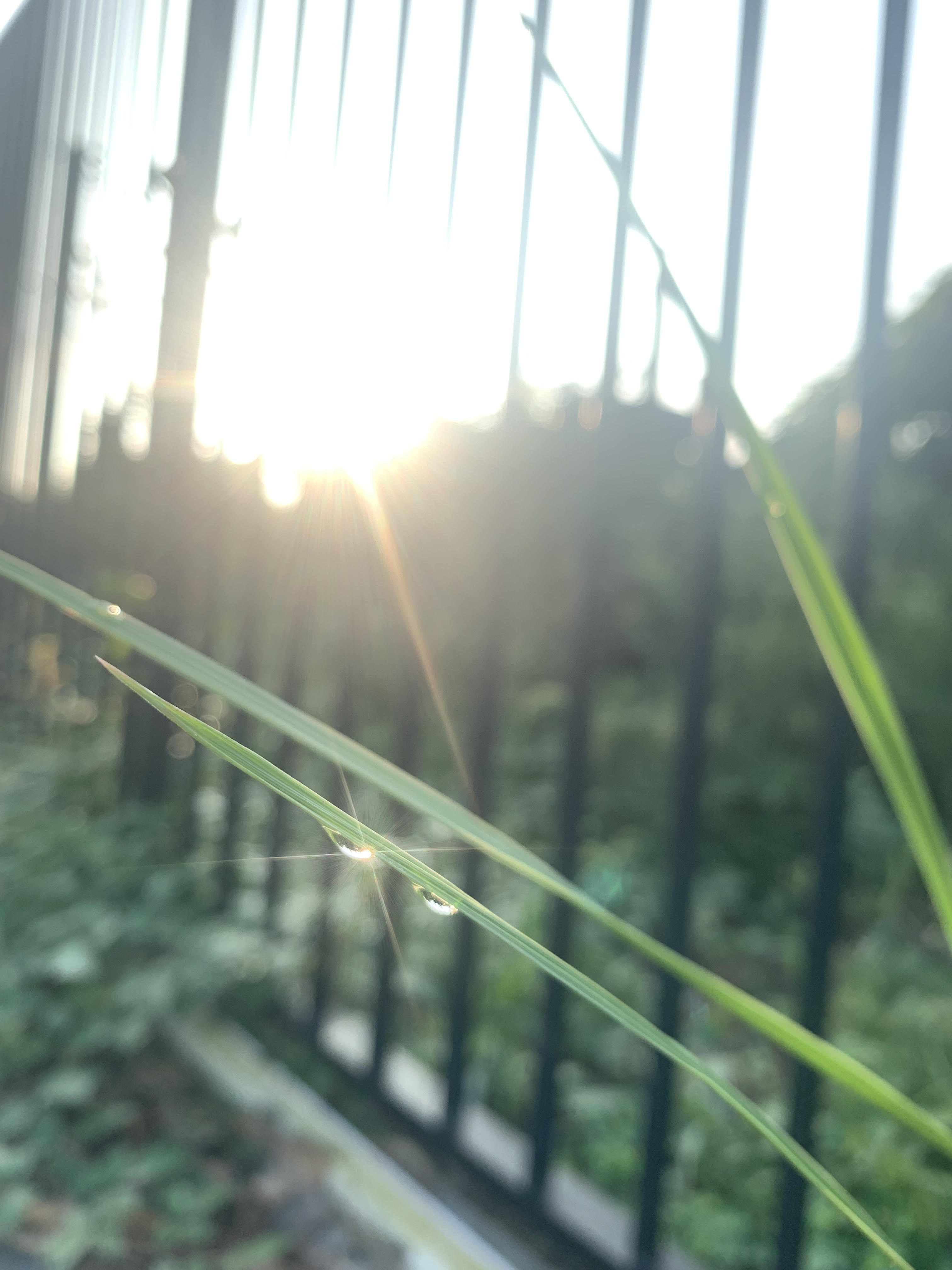 ある時は夏の早朝に歩き回っているカニたちを、ある時は突如現れたヤギを撮影し、そして、最近のヒット作は、朝露が輝く雑草です♪