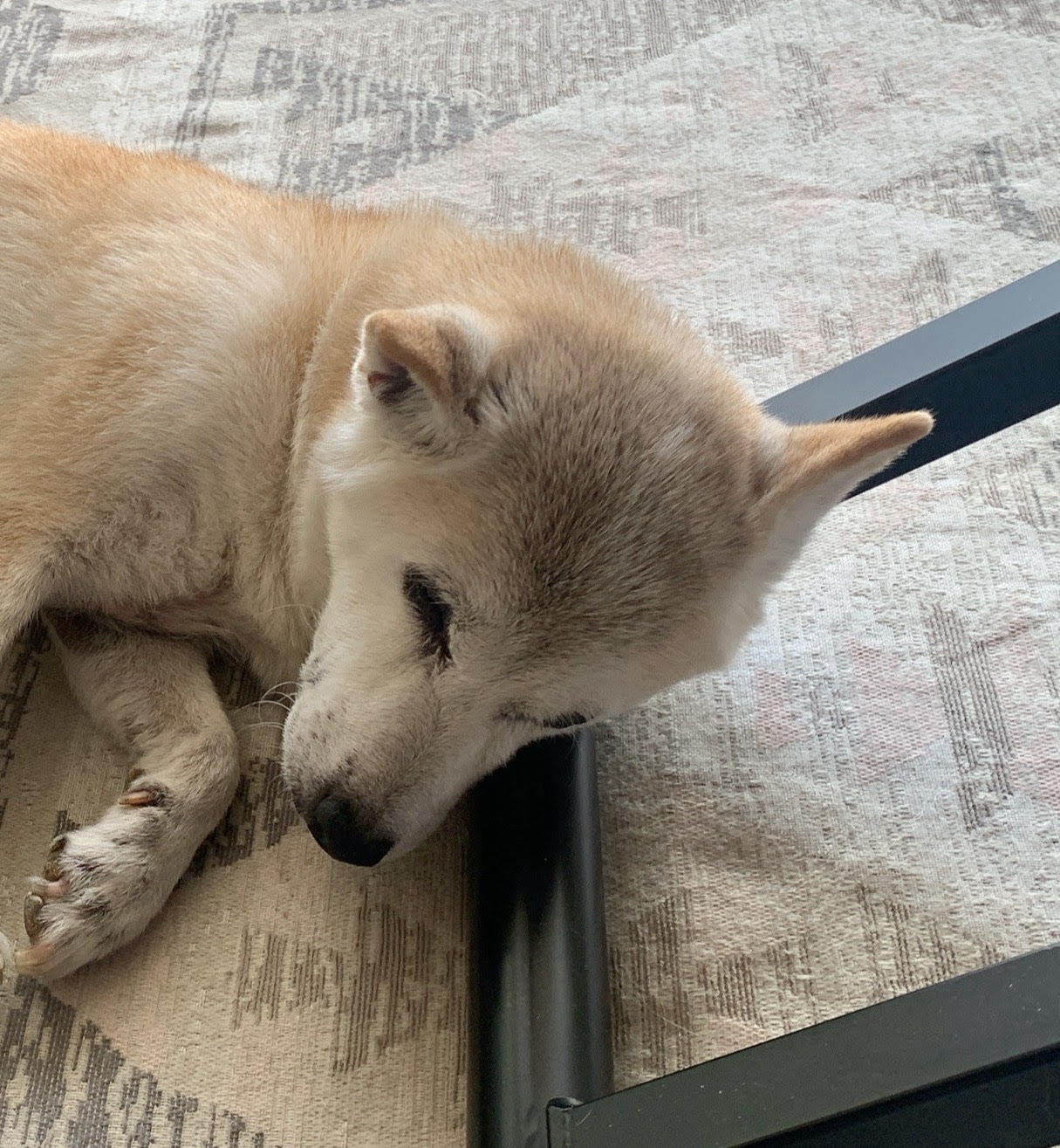 我が家の可愛い愛犬は、秋風に吹かれて気持ち良さそうにまどろんではいるものの、祭りの音に耳をピクピクさせながら落ち着かないようです。