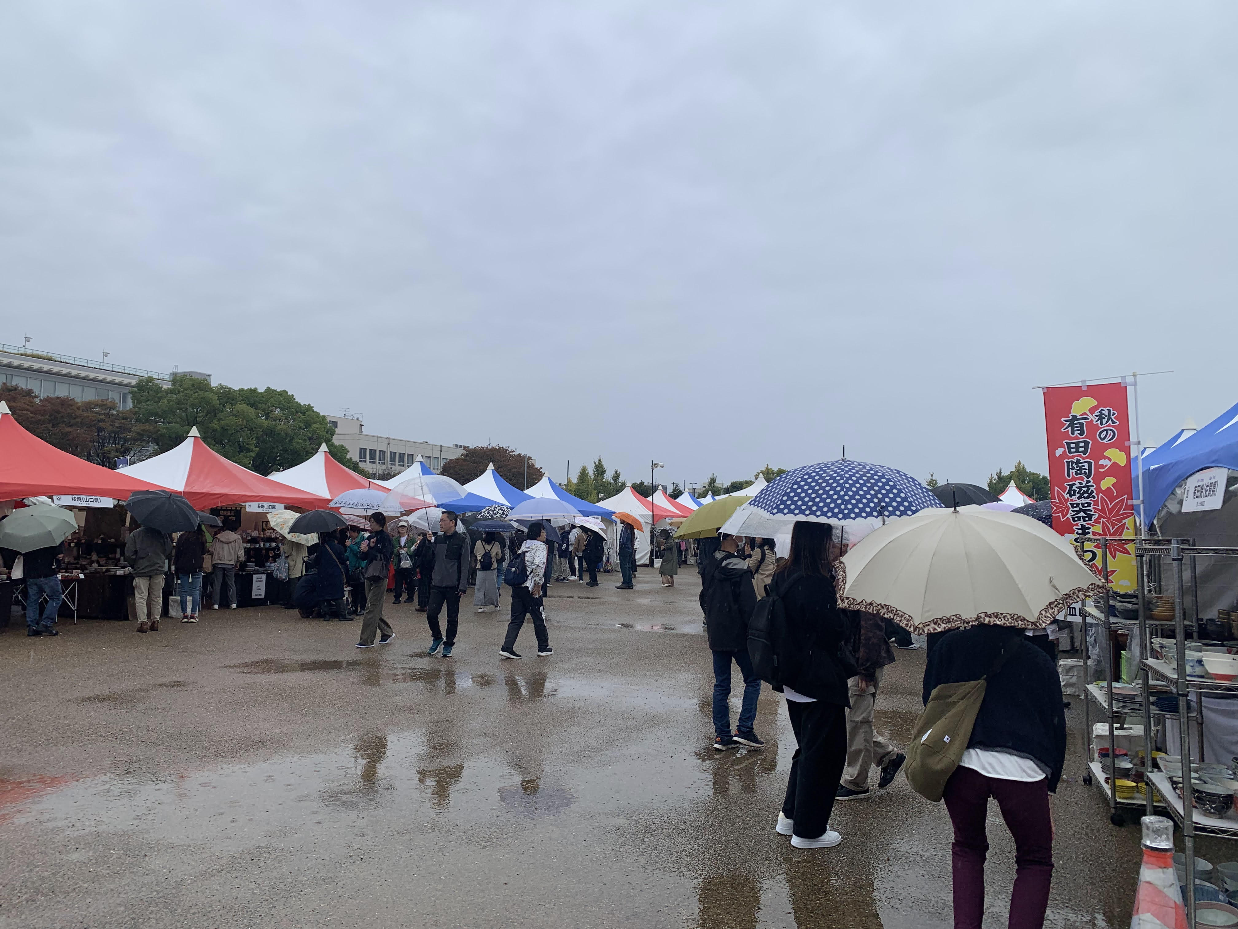 先日訪れた陶器市初日は、朝からあいにくの雨…。