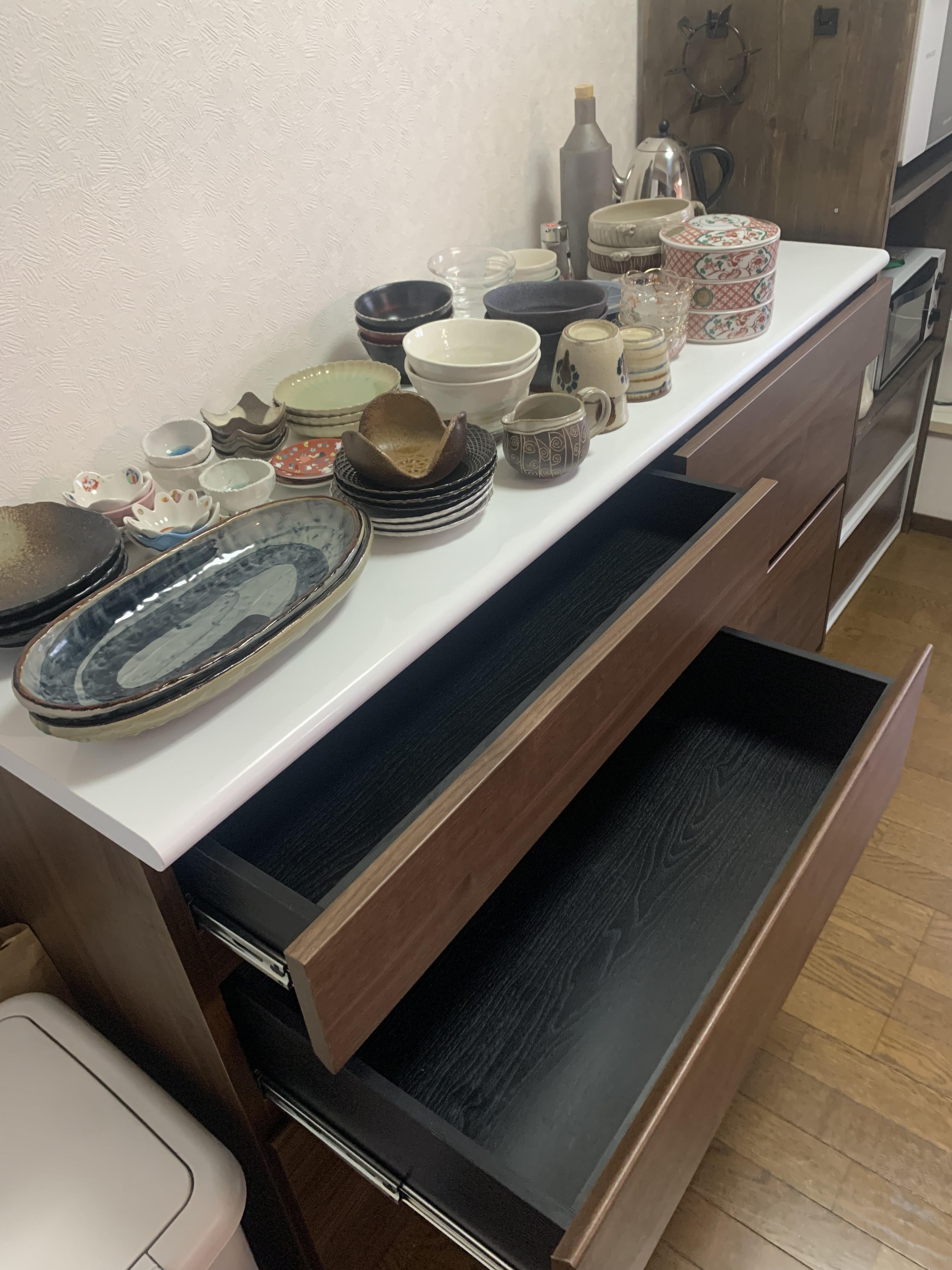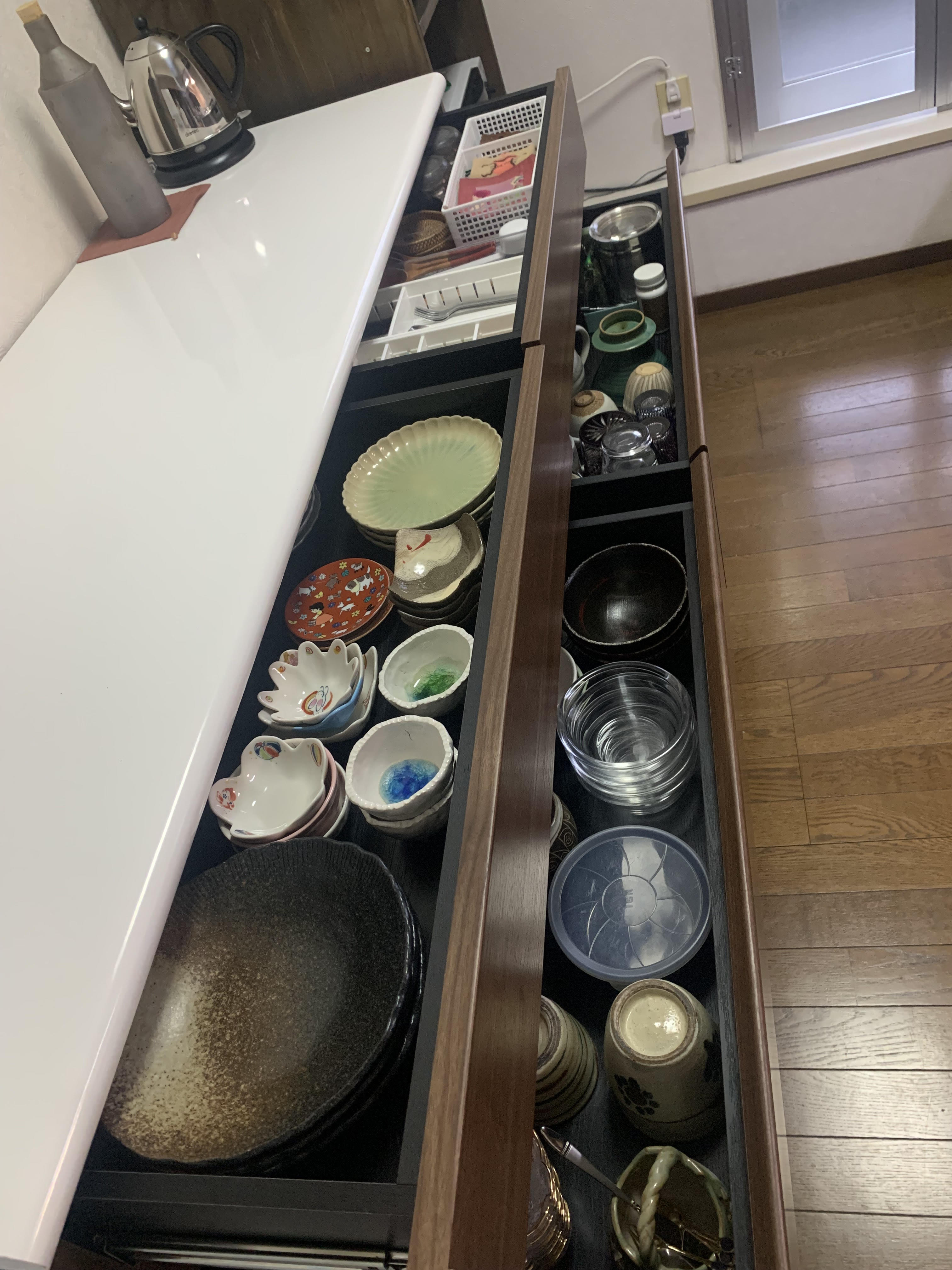 引き出し2つ分に収納してある食器を全出しするのは、越してきてから約1年ぶりです。