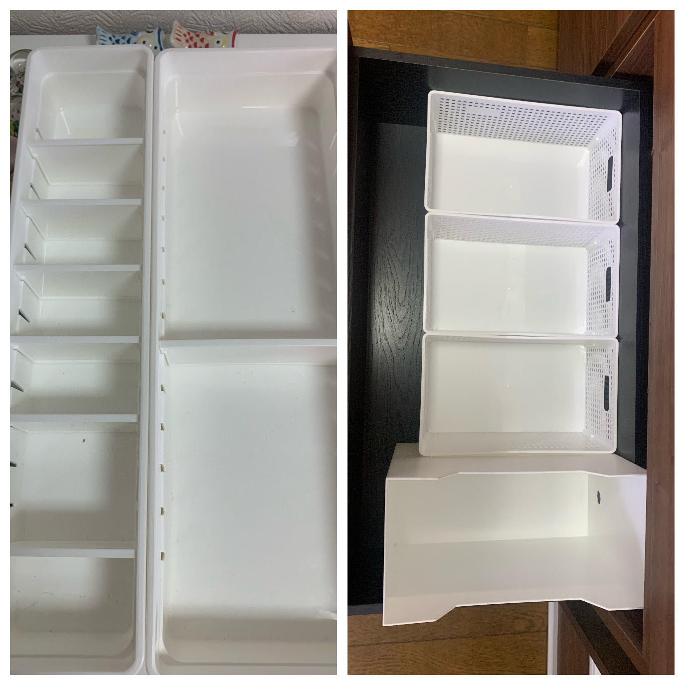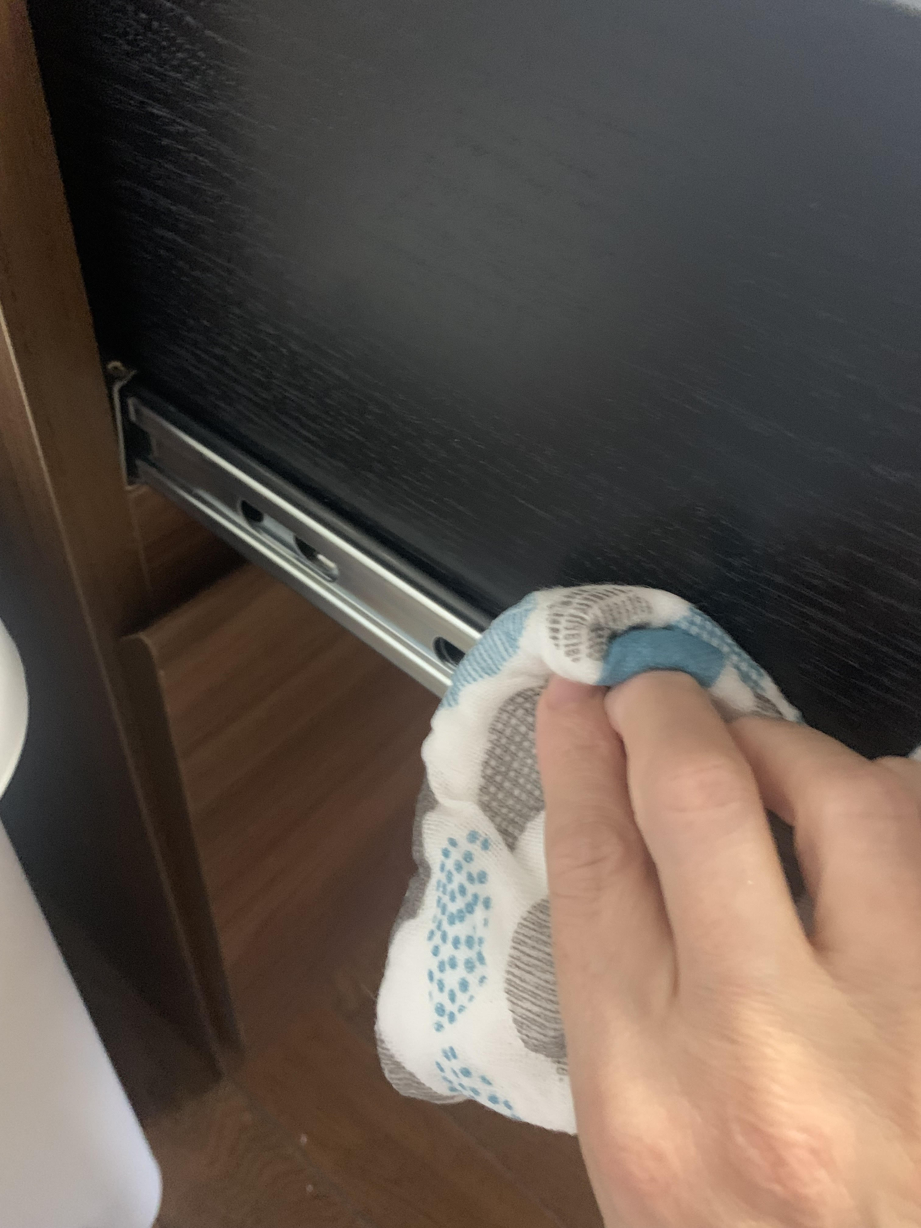 引き出しの中やレールの部分を掃除し、収納ケースもキレイに洗ってセットします。