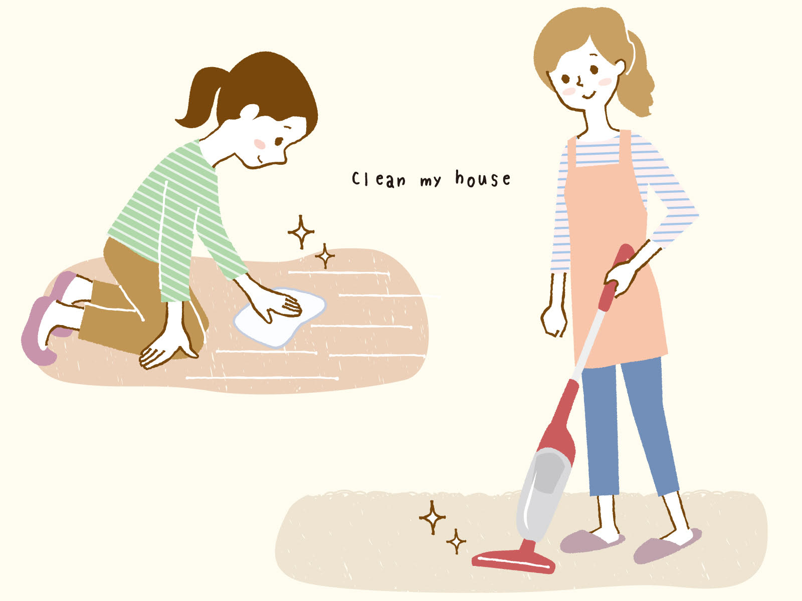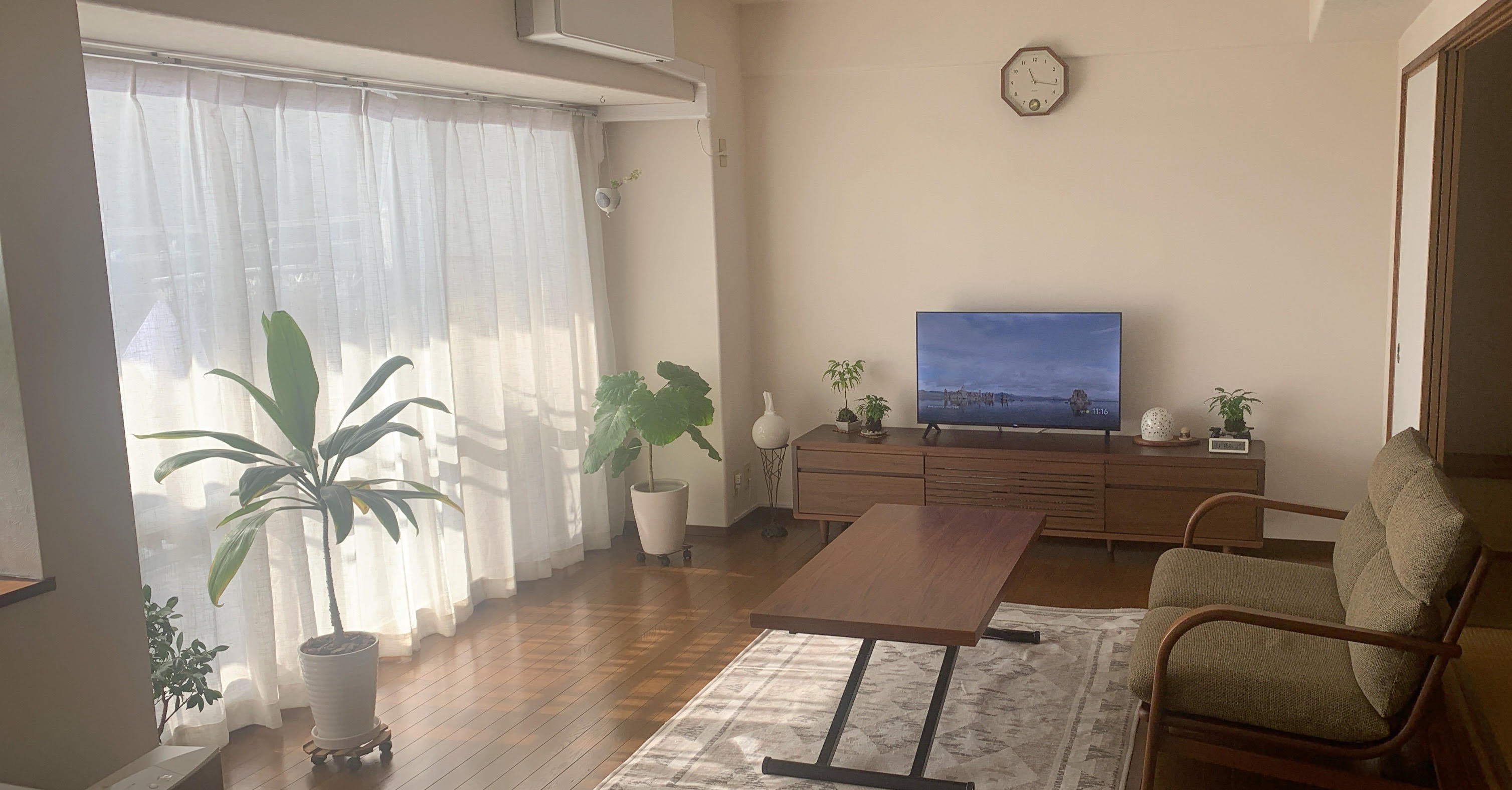 テレビボード以外のテーブルやソファーを、隣の和室へ移動させ、しっかりフローリングを拭いていきます。